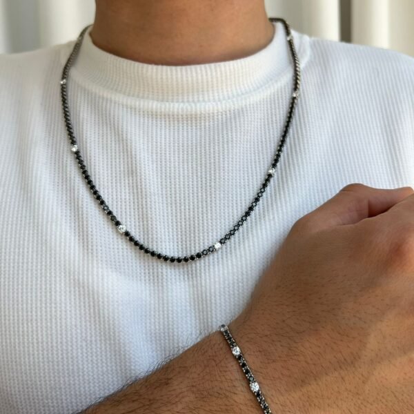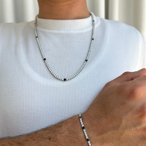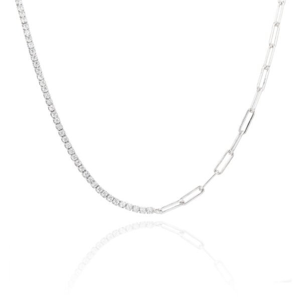 שרשרת עשוייה כסף אמיתי 925 משובצת זרקונים אורך השרשרת: 40+5 ס”מ