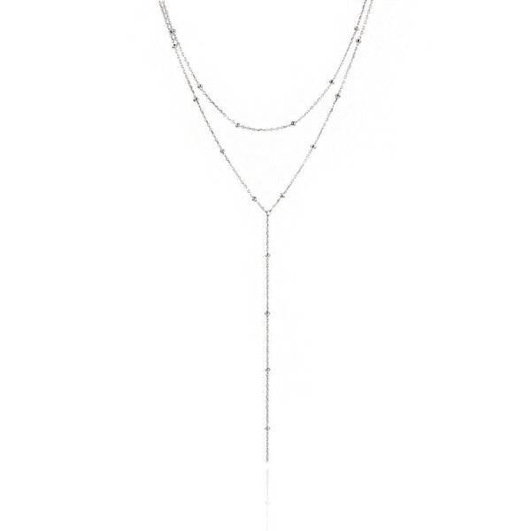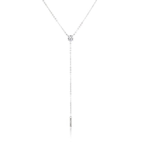 שרשרת עניבה נופלת עשויה כסף אמיתי 925 משובצת אבני זרקון אורך השרשרת: 40+5 ס”מ