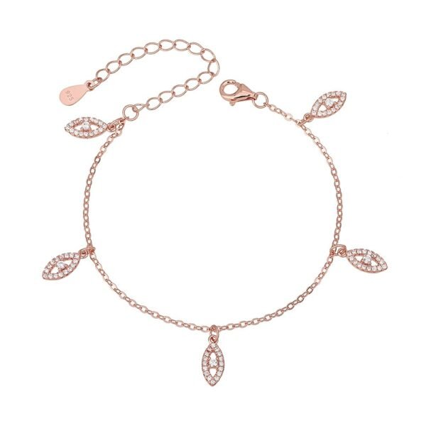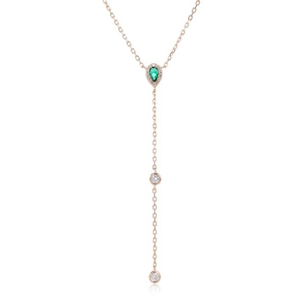 שרשרת עניבה נופלת עשויה כסף אמיתי 925 בציפוי זהב אדום (רוז גולד) משובצת אבני זרקון אורך השרשרת: 40+5 ס”מ