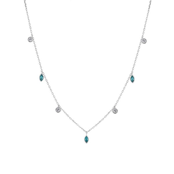 כסף אמיתי 925 | אבני זרקון לבנות וכחולות | אורך: 35+5 ס"מ