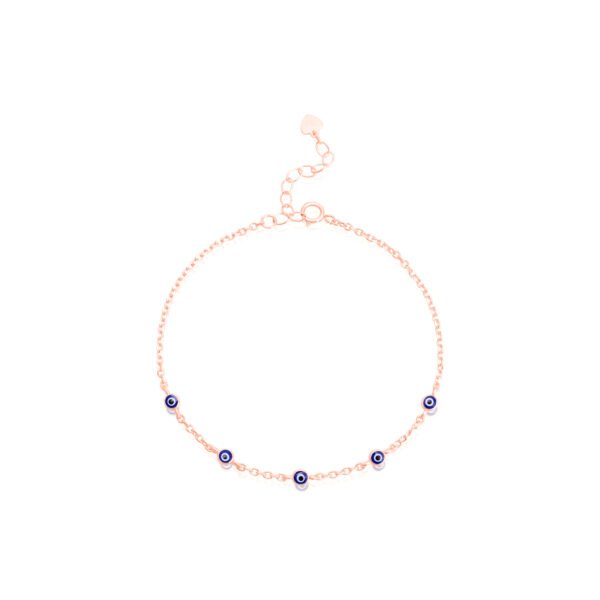 צמיד עשוי כסף אמיתי 925 בציפוי זהב אדום (רוז גולד) משובץ אבני זרקון אורך הצמיד: 15+5 ס”מ