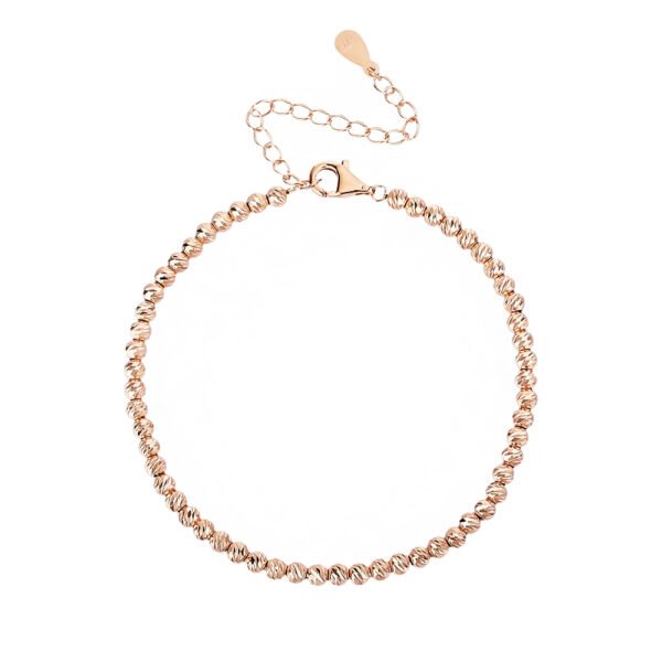 צמיד כדורים בחיתוך לייזר עשוי כסף אמיתי 925 בציפוי זהב אדום (רוז גולד)