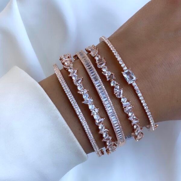 צמיד כסף אמיתי 925 בציפוי רוז גולד, משובץ אבני זרקון, באורך 15+5 ס״מ.