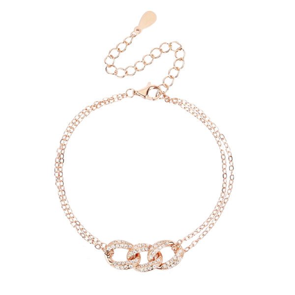 צמיד עשוי כסף אמיתי 925 בציפוי זהב אדום (רוז גולד) משובץ אבני זרקון אורך הצמיד: 15+5 ס”מ
