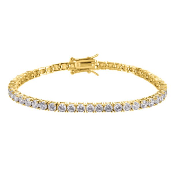 צמיד טניס עשוי כסף אמיתי 925 בציפוי זהב 14K (1 מיקרון) משובץ אבני זרקון באיכות 5A מידת הצמיד ניתנת לבחירה