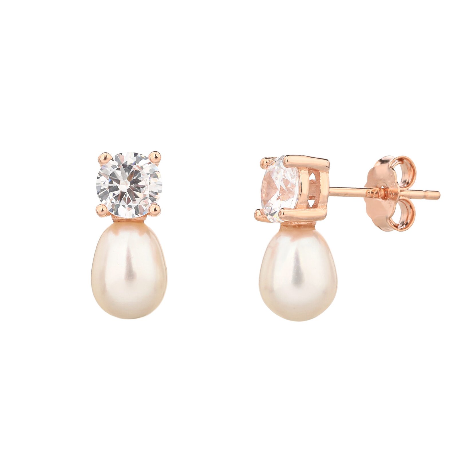 כסף אמיתי 925 בציפוי רוז גולד | פנינה לבנה וזרקון עדין