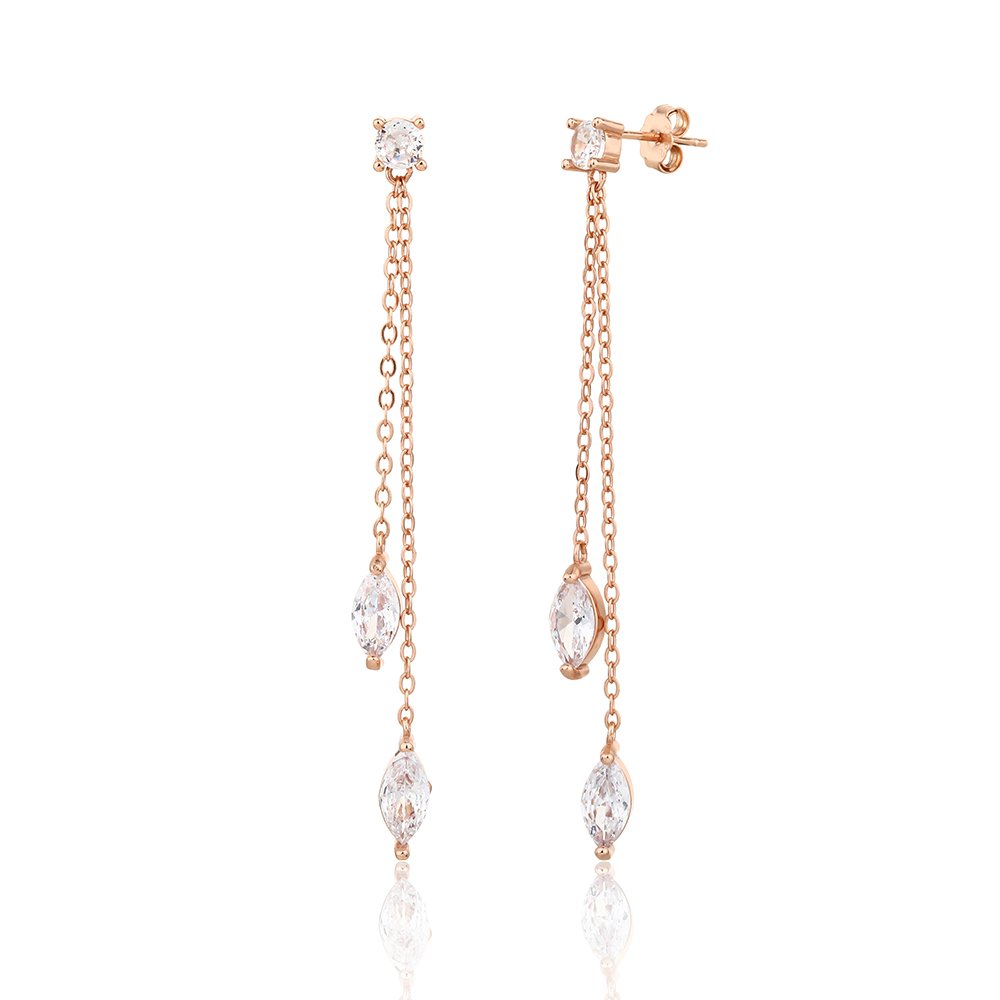 עגילי Lunaria בציפוי רוז גולד נולדו כדי להאיר כל מראה ברוך ובסטייל נשי. עשויים כסף אמיתי 925 בציפוי רוז גולד יוקרתי, ומשובצים באבני זירקון מרהיבות. השילוב בין הברק העדין של האבנים לגוון החם של הרוז גולד יוצר תכשיט מושלם למראה מעודן ומואר.