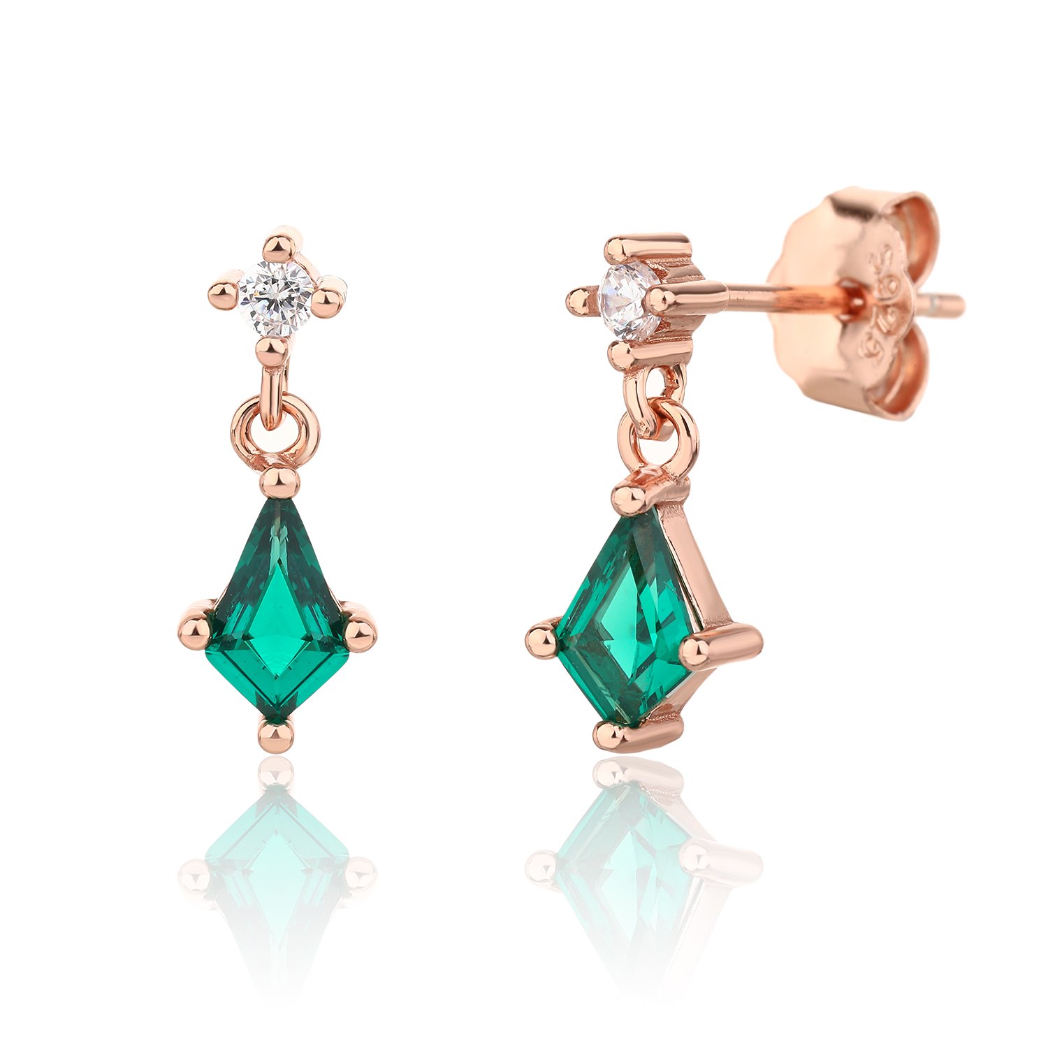 כסף אמיתי 925 בציפוי רוז גולד | זירקון ירוק ולבן