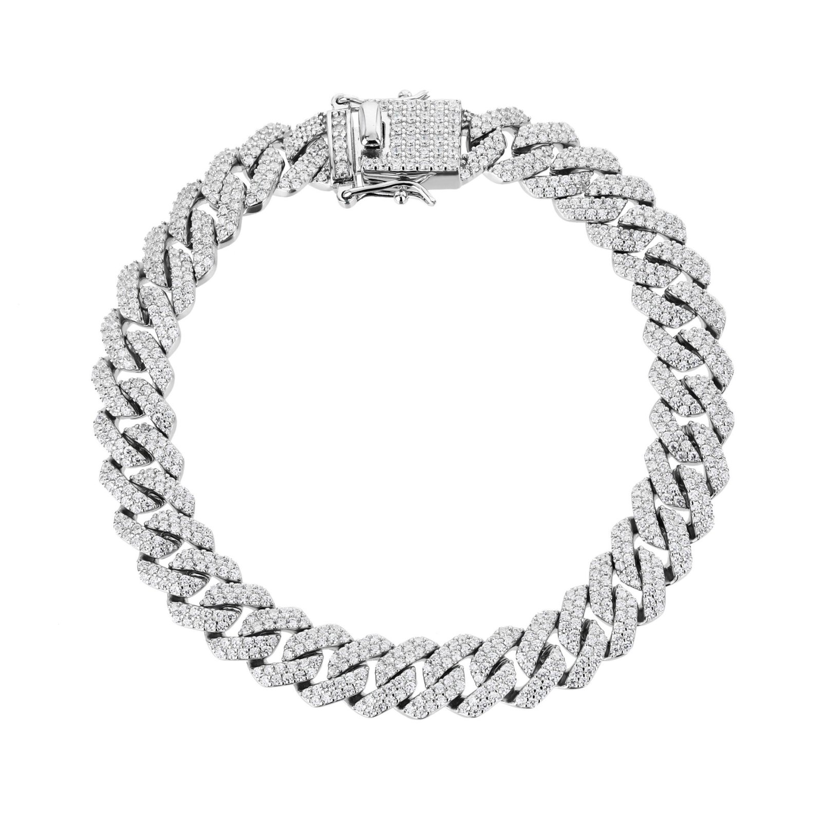 צמיד חוליות מכסף אמיתי 925, משובץ אבני זרקון, באורך לבחירה