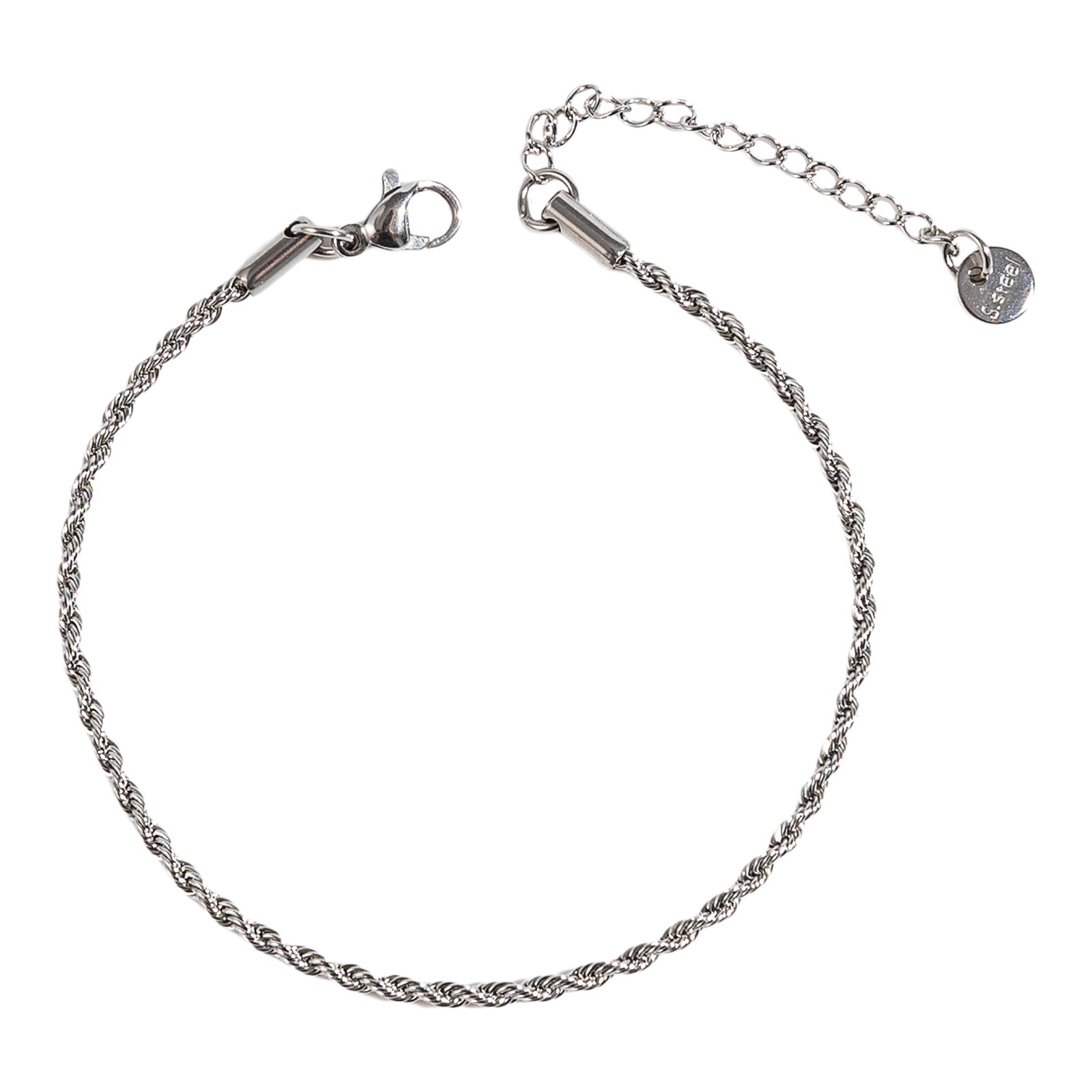 פלדת אל-חלד בגימור כסוף | עיצוב חבל שזור | רוחב: 2 מ”מ | אורך: 18+4 ס”מ