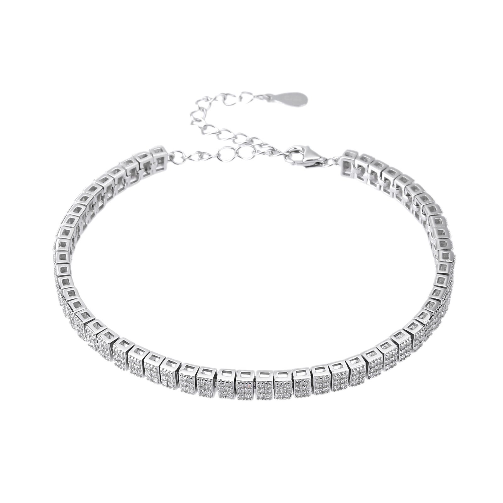 צמיד כסף אמיתי 925 משובץ אבני זרקון, באורך 15+5 ס״מ