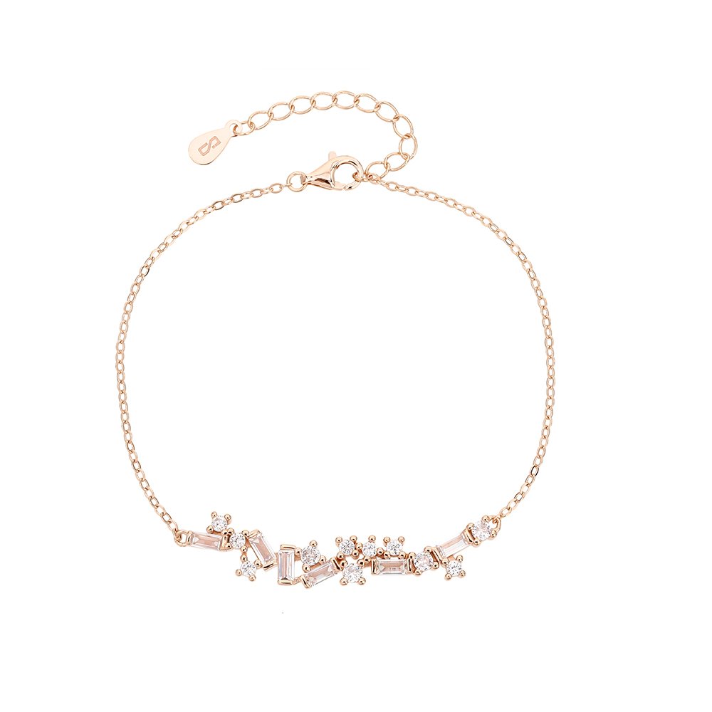 צמיד טניס עשוי כסף אמיתי 925 בציפוי זהב אדום (1 מיקרון) משובץ אבני זרקון באיכות 5A מידת הצמיד ניתנת לבחירה