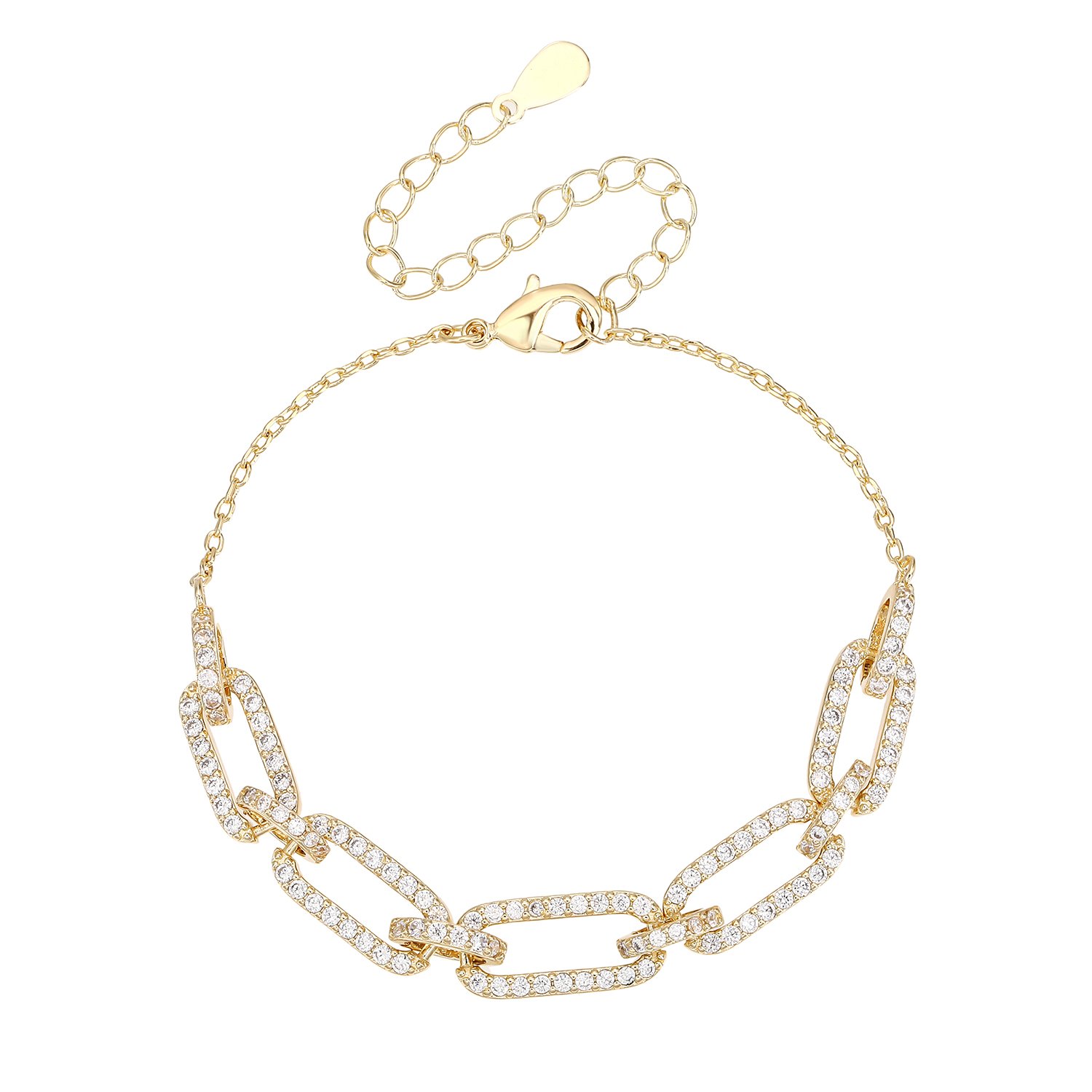 צמיד פליז בציפוי זהב 14K בעובי 2 מיקרון, משובץ אבני זרקון, באורך 15+5 ס״מ