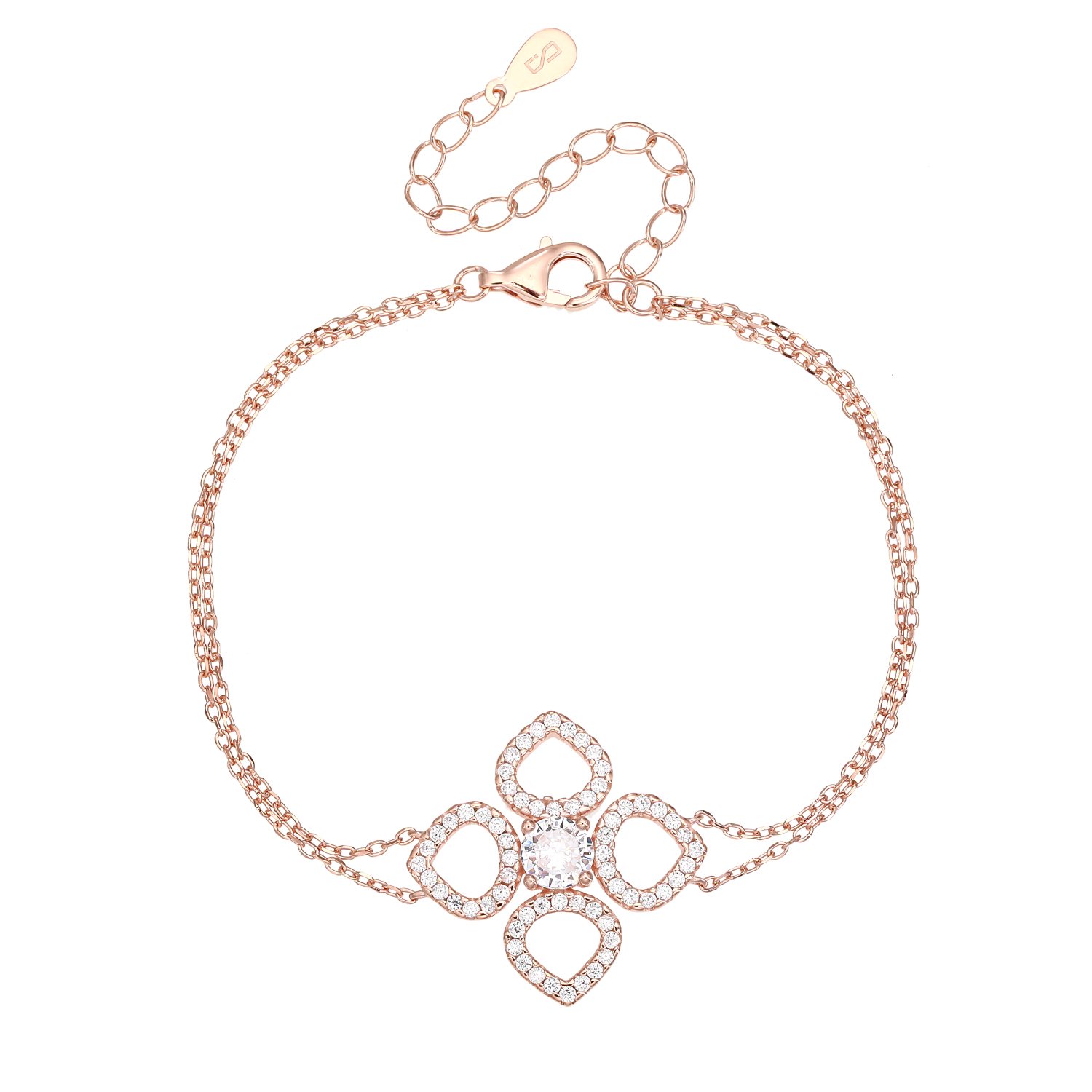 צמיד Amora בעיצוב רומנטי ויוקרתי, עשוי כסף אמיתי 925 בציפוי זהב אדום (רוז גולד) ומשובץ אבני זרקון נוצצות.