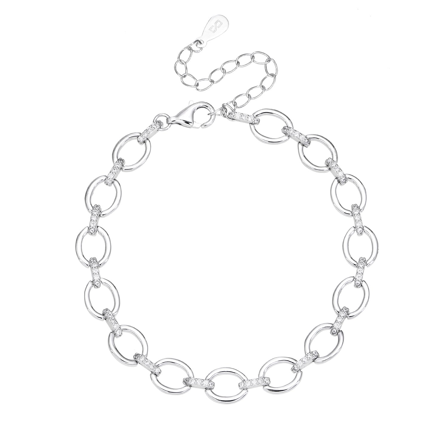 צמיד Varian בעיצוב חוליות עגולות קלאסיות, עשוי כסף אמיתי 925 ומשובץ אבני זרקון נוצצות.