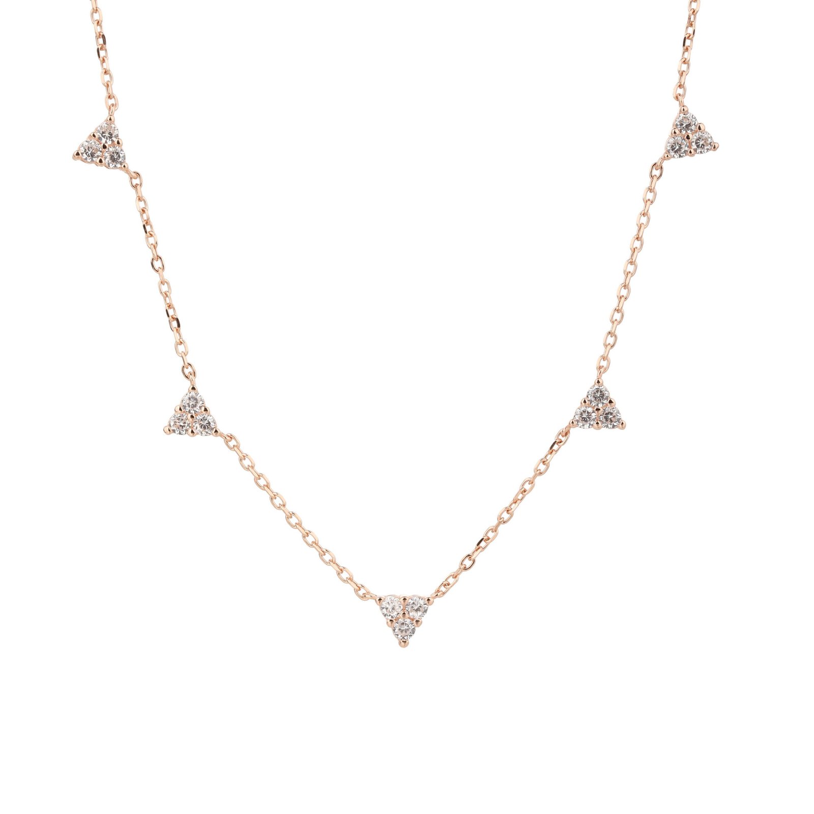 עשויה כסף אמיתי 925 בציפוי רוז גולד עדין ומשובצת באבני זרקון בוהקות בעיצוב משולשים עדין ומדויק.