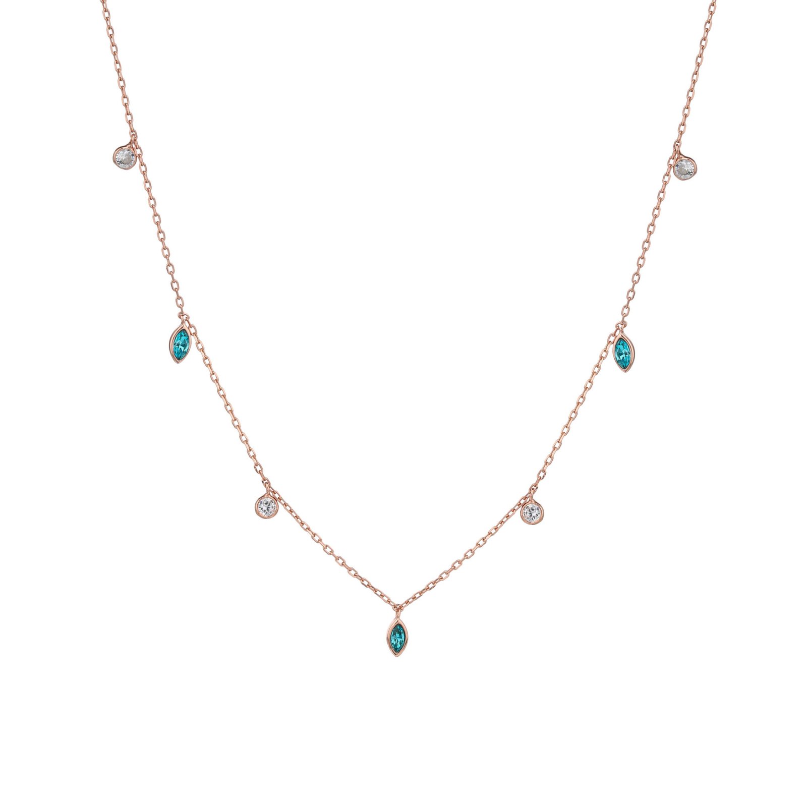 כסף 925 בציפוי רוז גולד | אבני זרקון לבנות וכחולות | אורך: 35+5 ס”מ