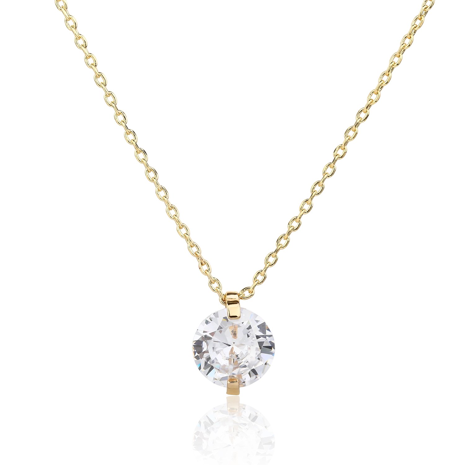 שרשרת סוליטר אלגנטית בעיצוב קלאסי ונשי, עשויה פליז בציפוי זהב 14K בעובי 2 מיקרון ומשובצת באבן זרקון בוהקת במרכז.